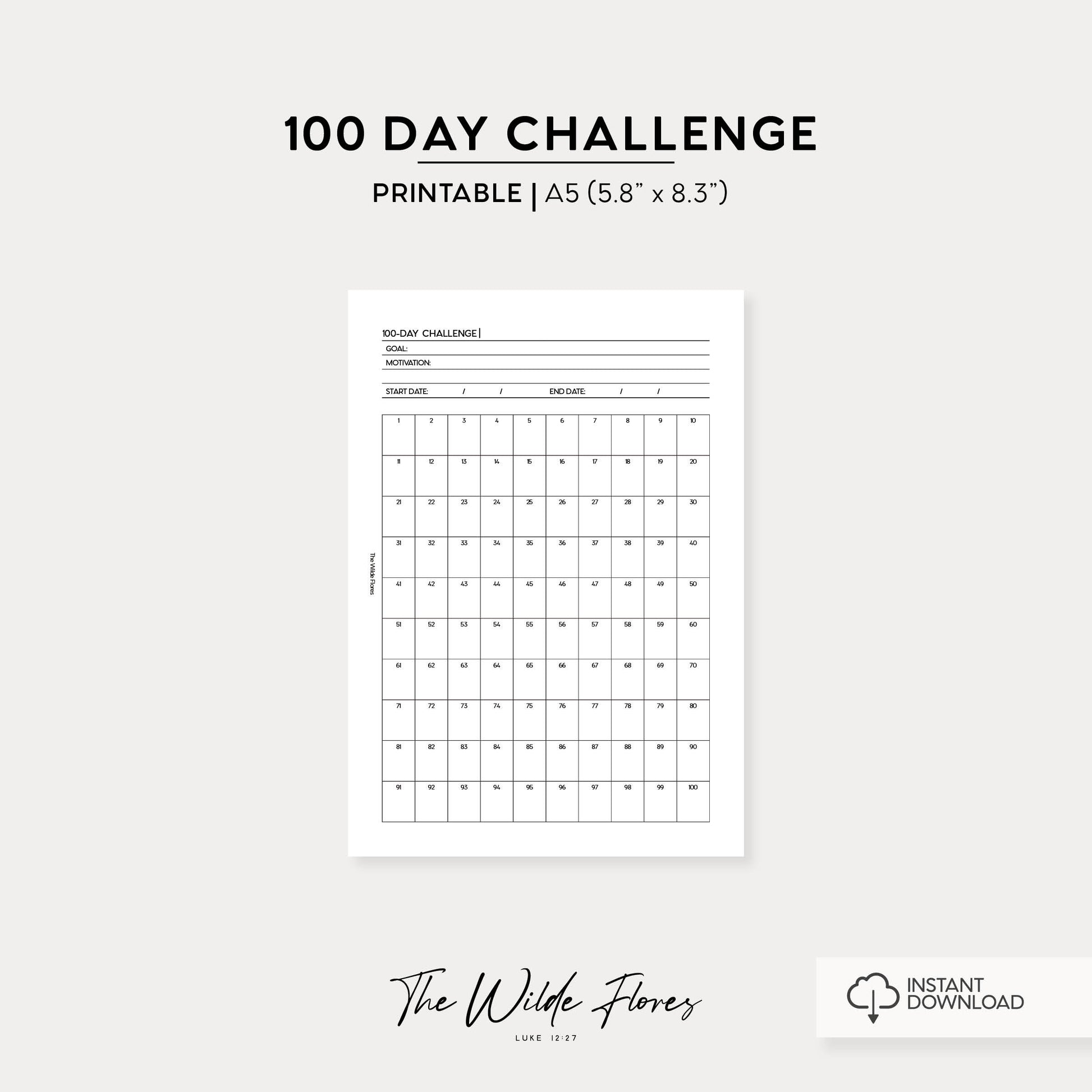 Challenge yourself by trying something new or cultivate a new habit with this 100 Day Challenge insert.
