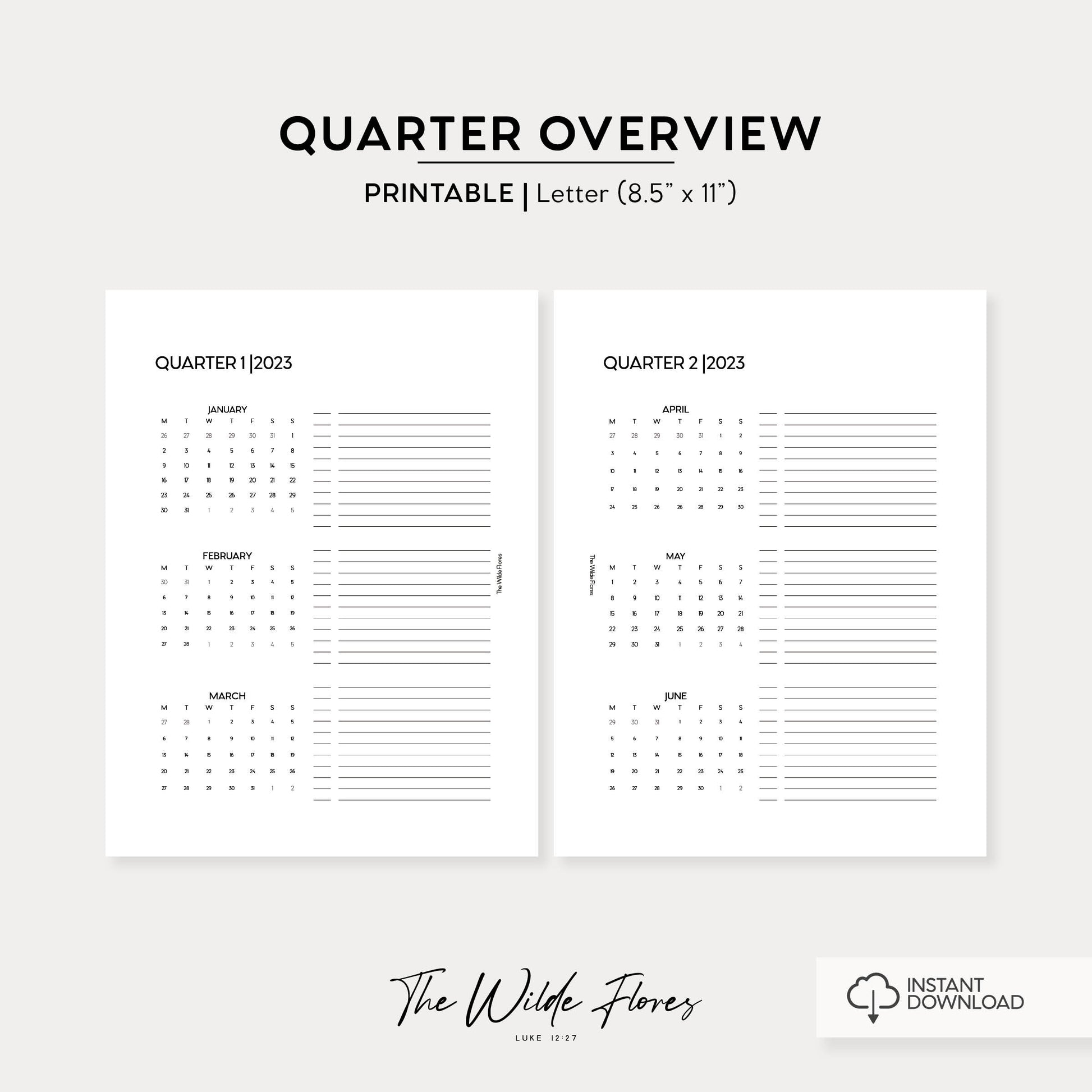 Plan out your year with this DATED for 2023 quarter overview insert.