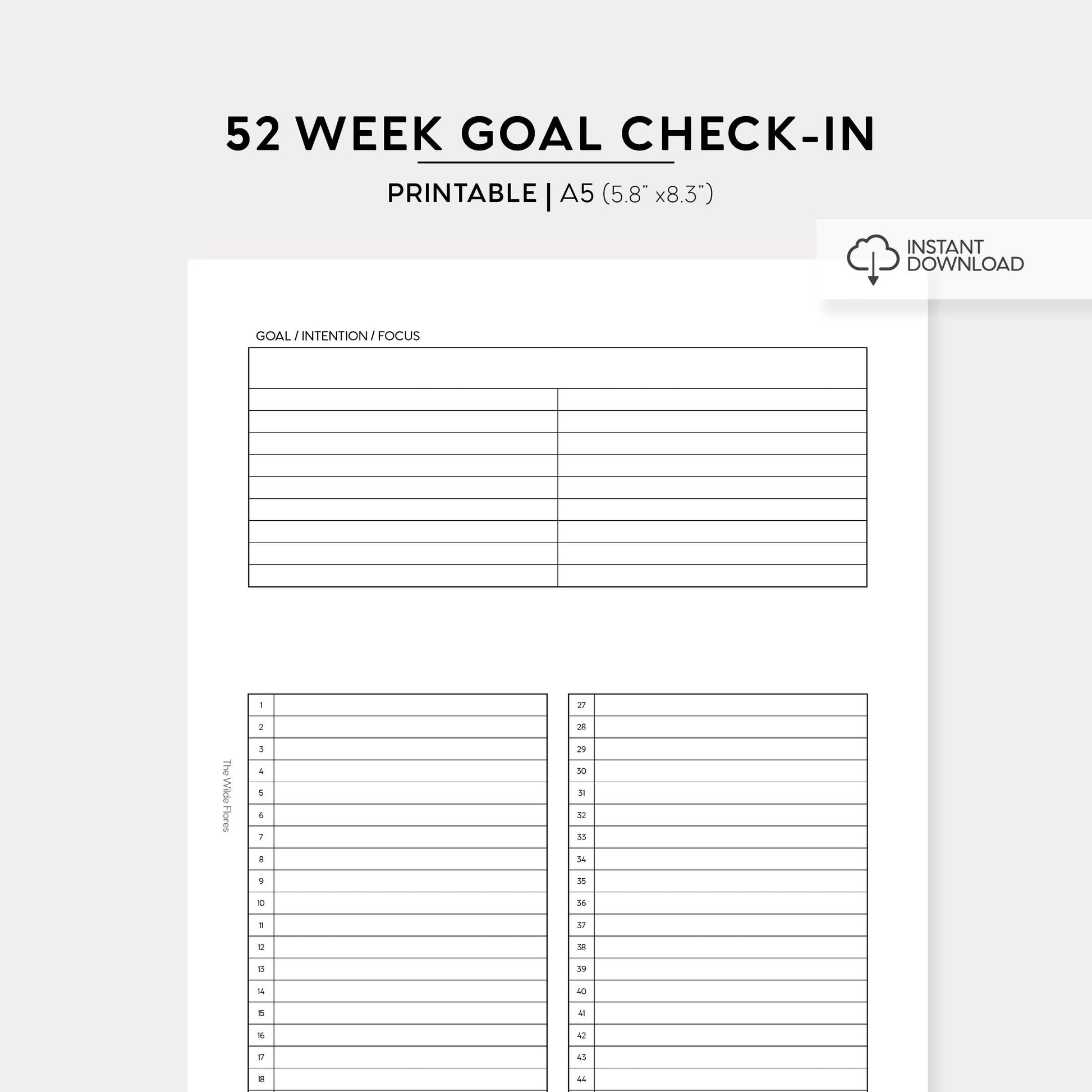 Looking for a way to plan and track your goals? This printable helps you track of progress on your goals every week of the year. Track steps you take towards your goal every week.