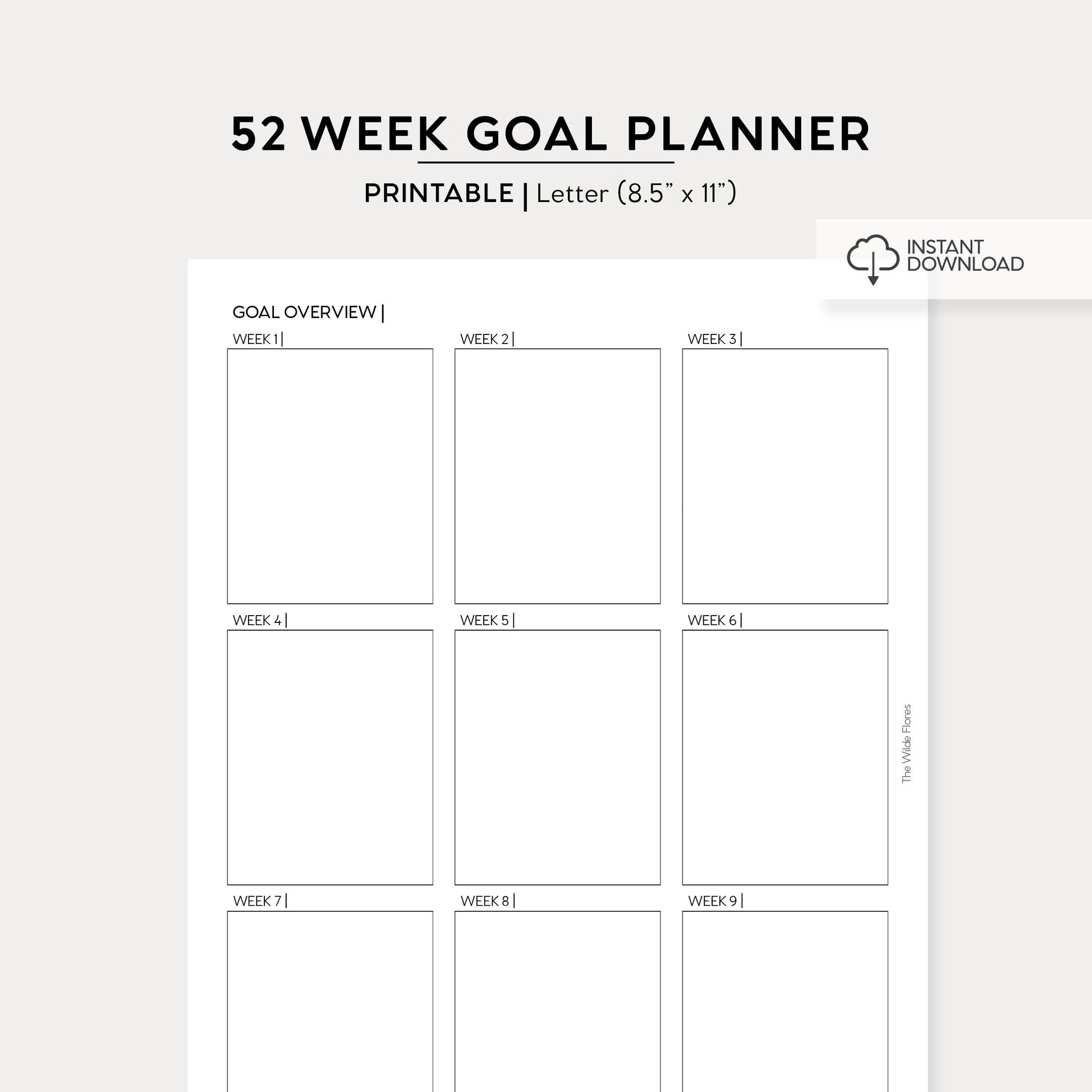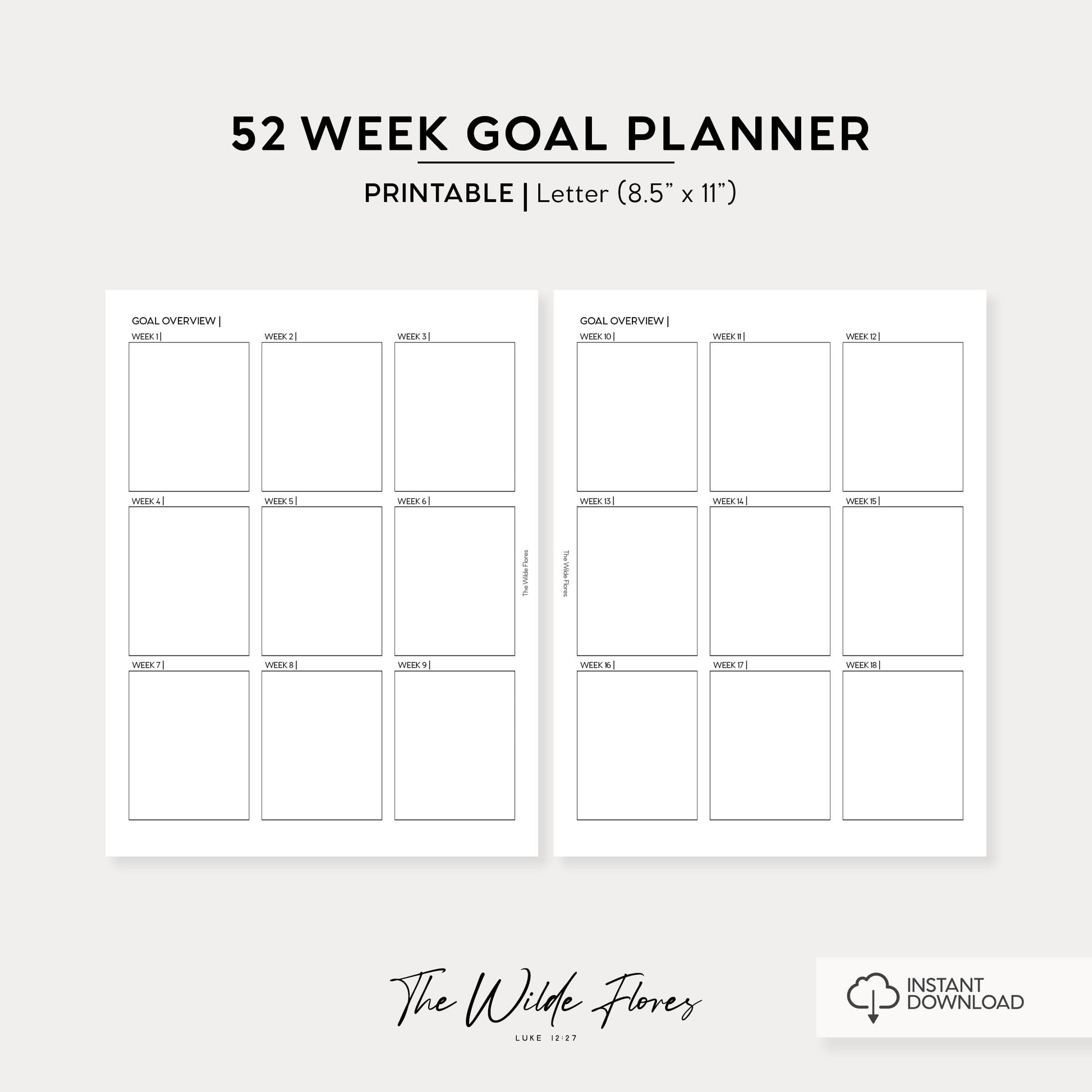 52 Week Goal Planner: Letter Size Printable