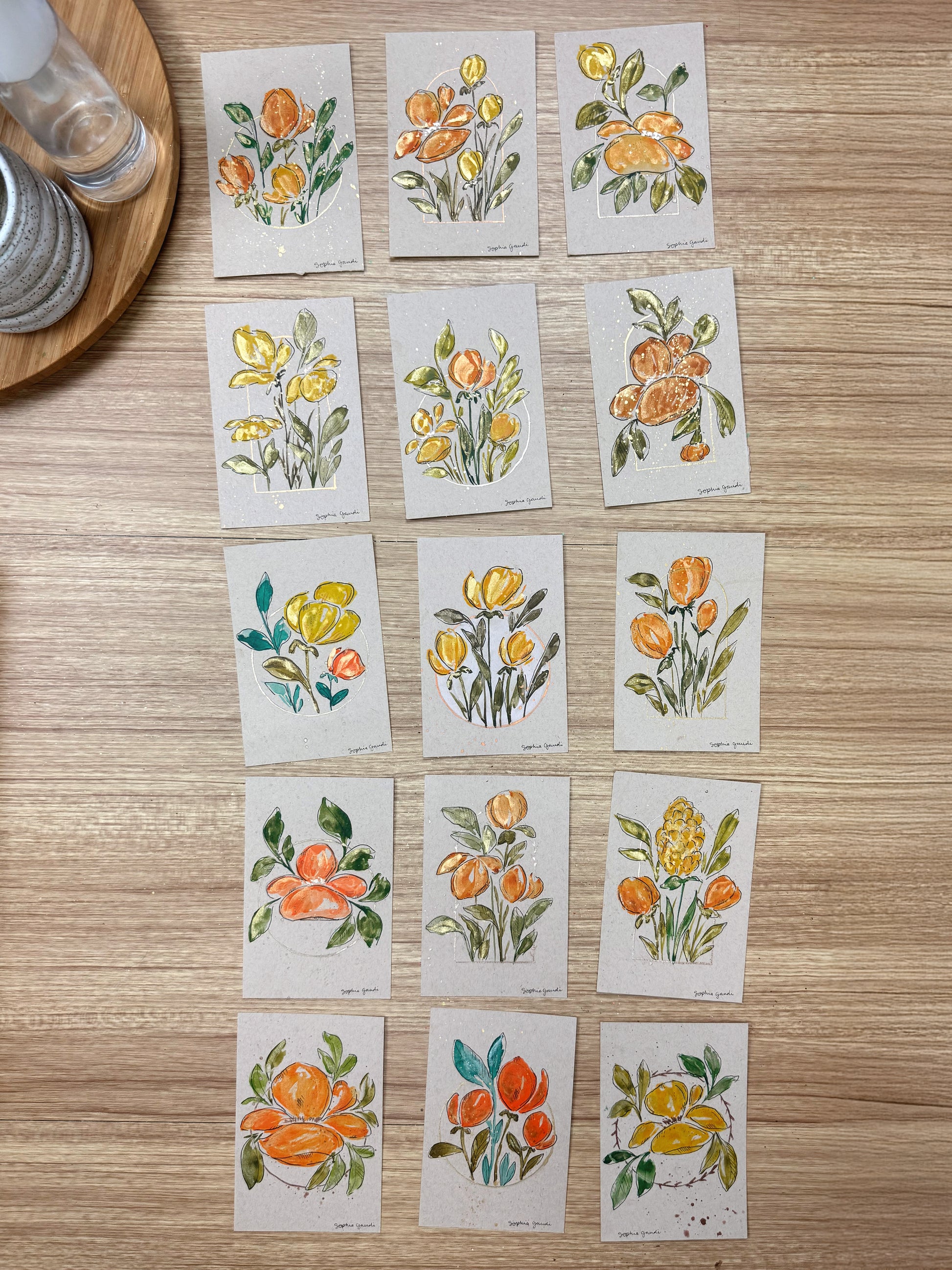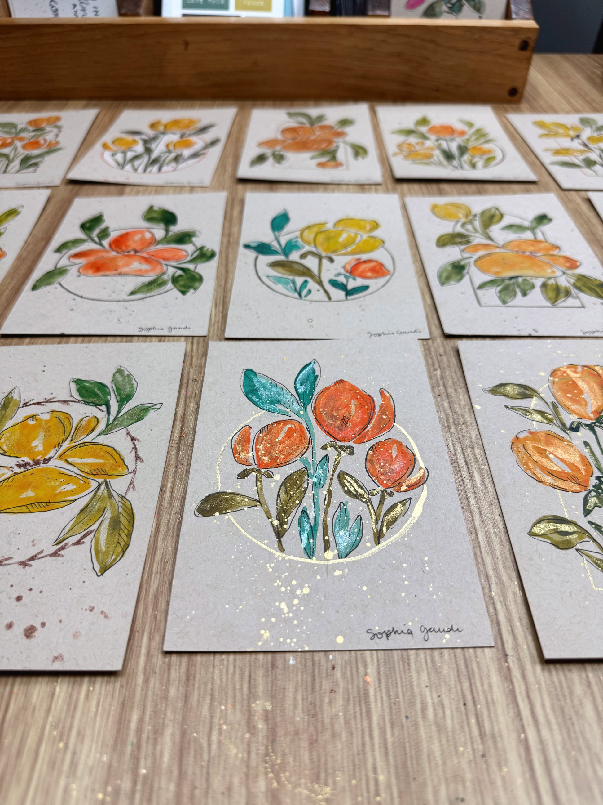 - Hand-painted watercolor cards