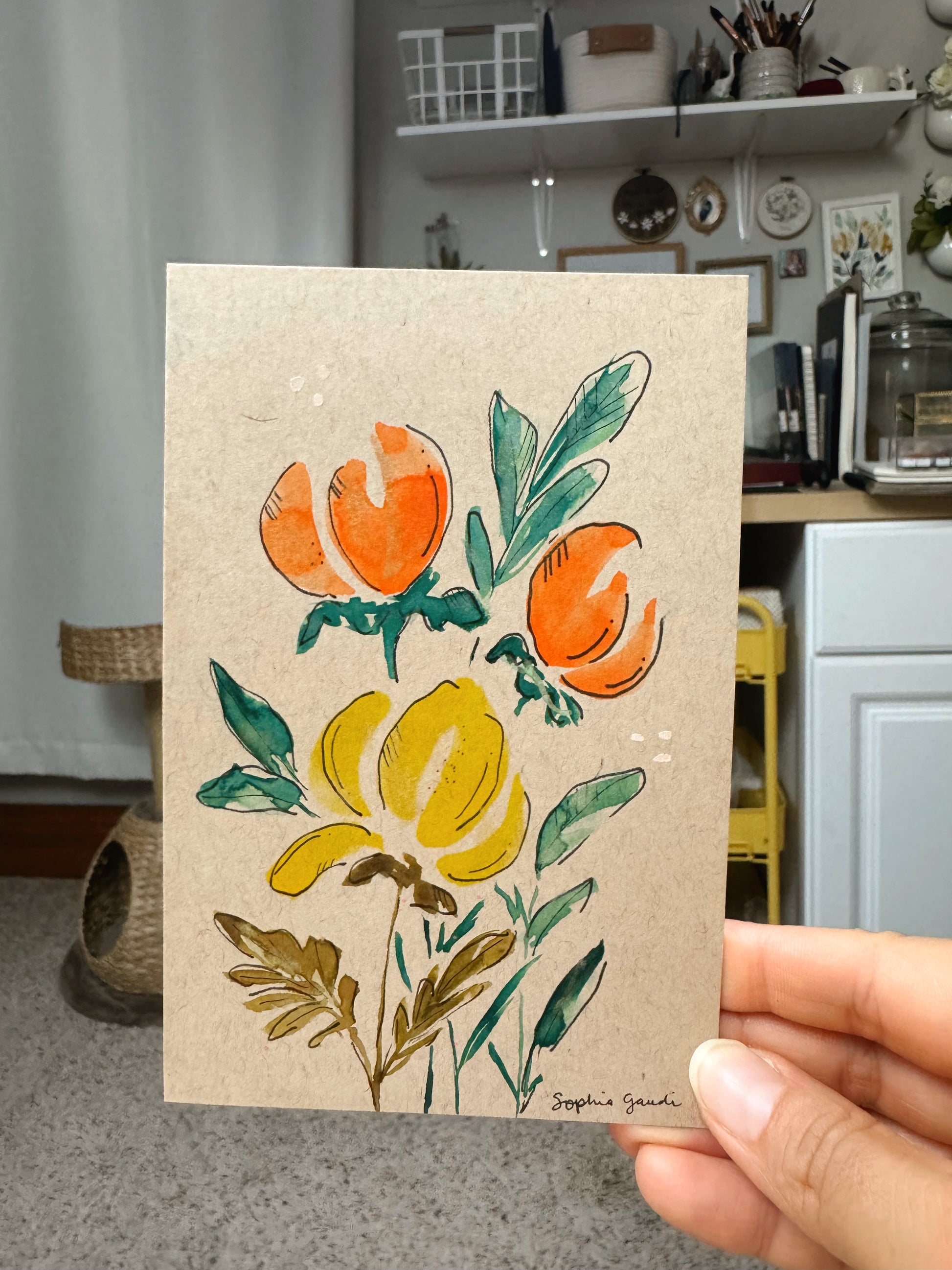- Hand-painted watercolor cards