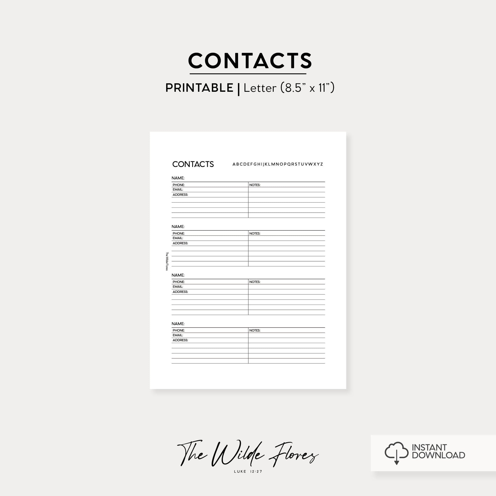 Contacts: Letter Size Printable