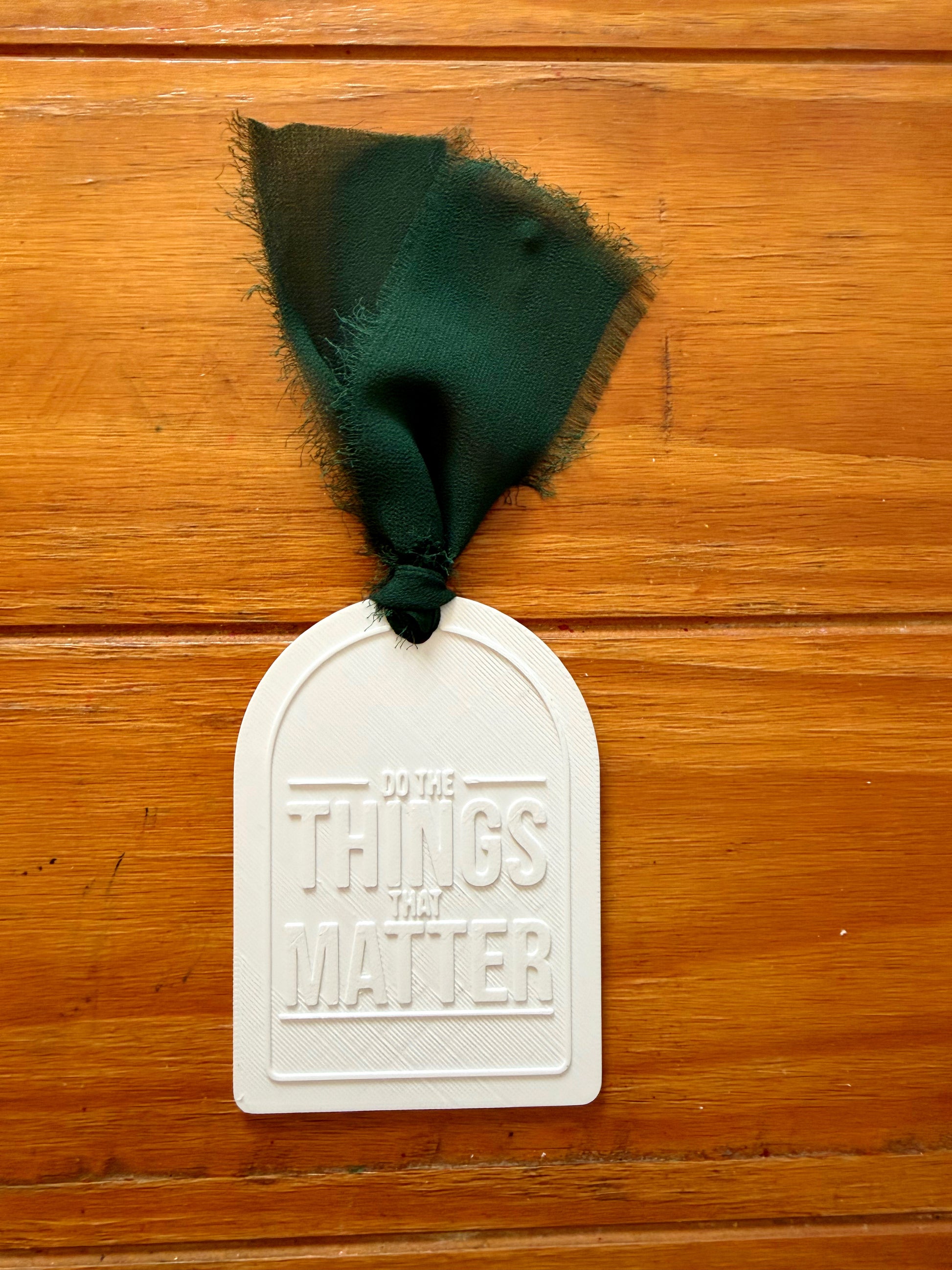 Bookmark designed to bring you back to what matters most. Featuring the phrase “Do the Things That Matter,” this 3D printed PLA bookmark is lightweight, durable, and finished with a soft silk ribbon for an elevated touch.