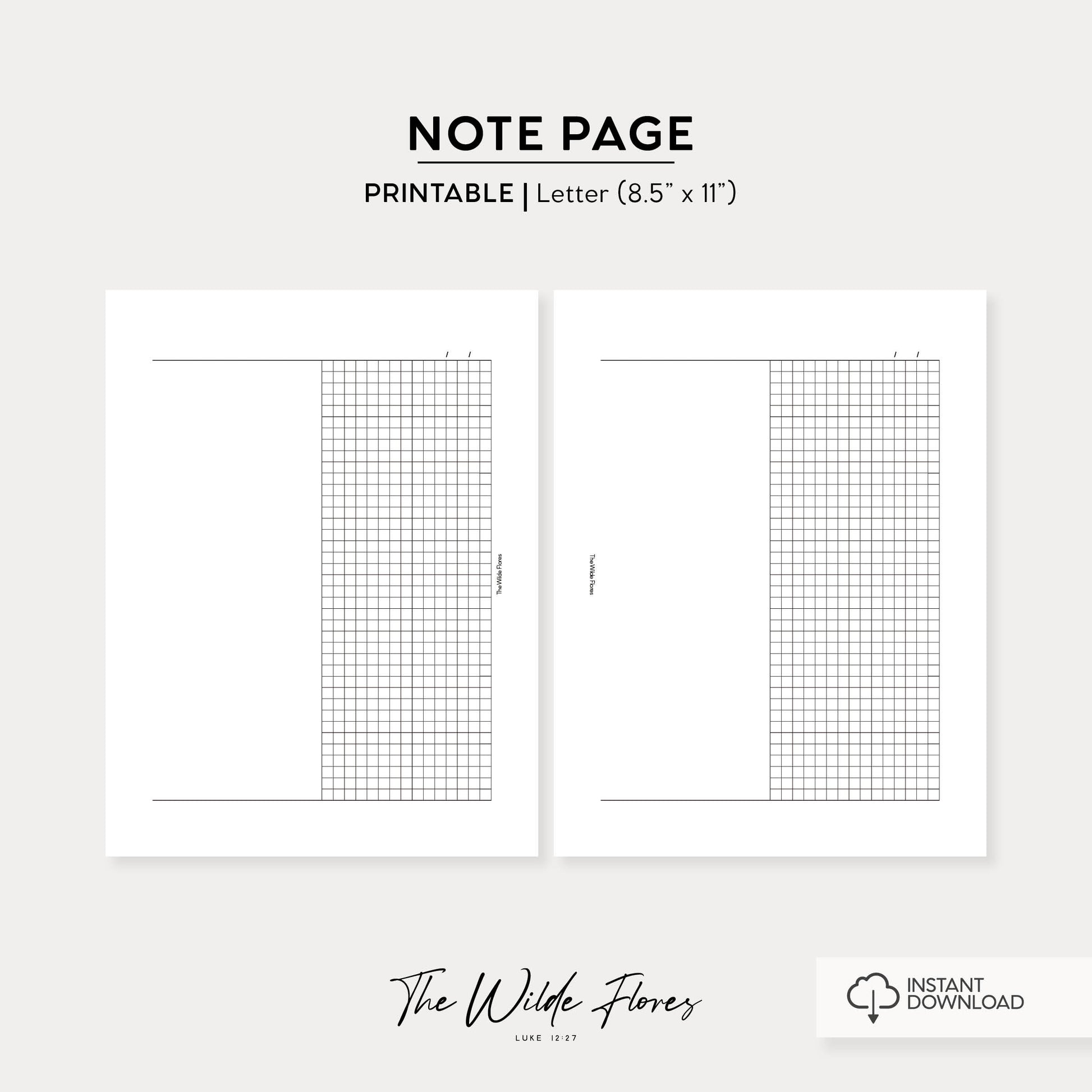 GRID Vertical Half Note Pages: Letter Size Printable