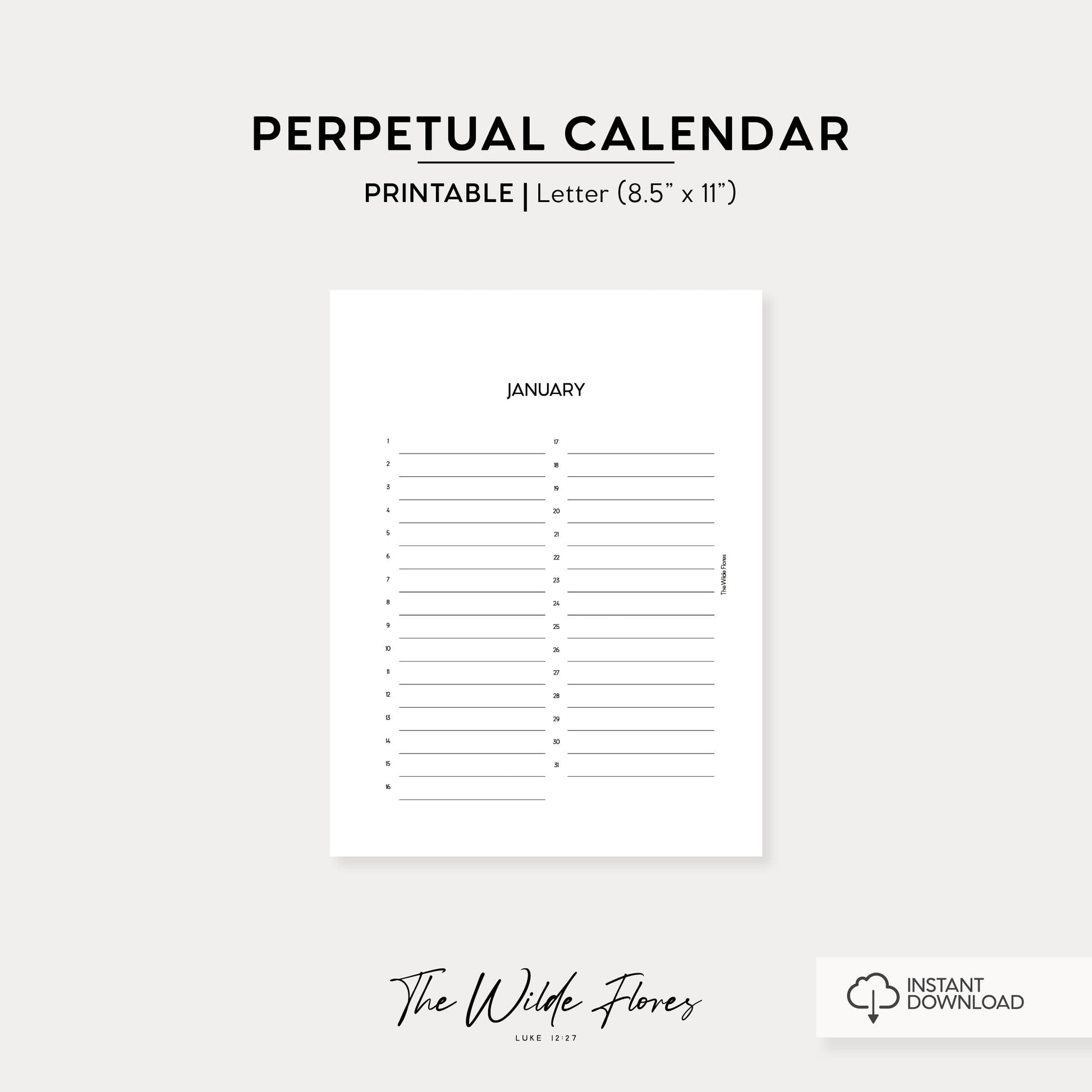 Perpetual Calendar: Letter Size Printable