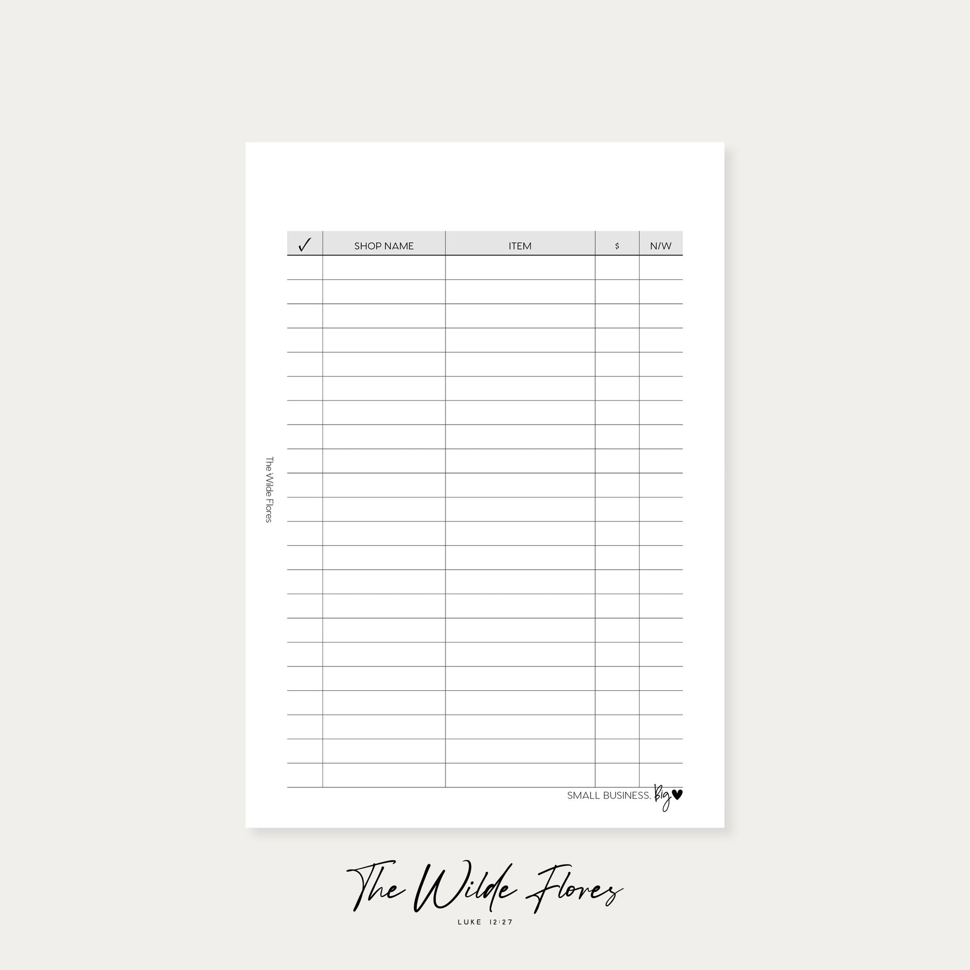 This shopping list was designed to as a space to keep track of all your favorite handmade shops and items all in one spot for quick access when shopping for yourself or a loved one.
