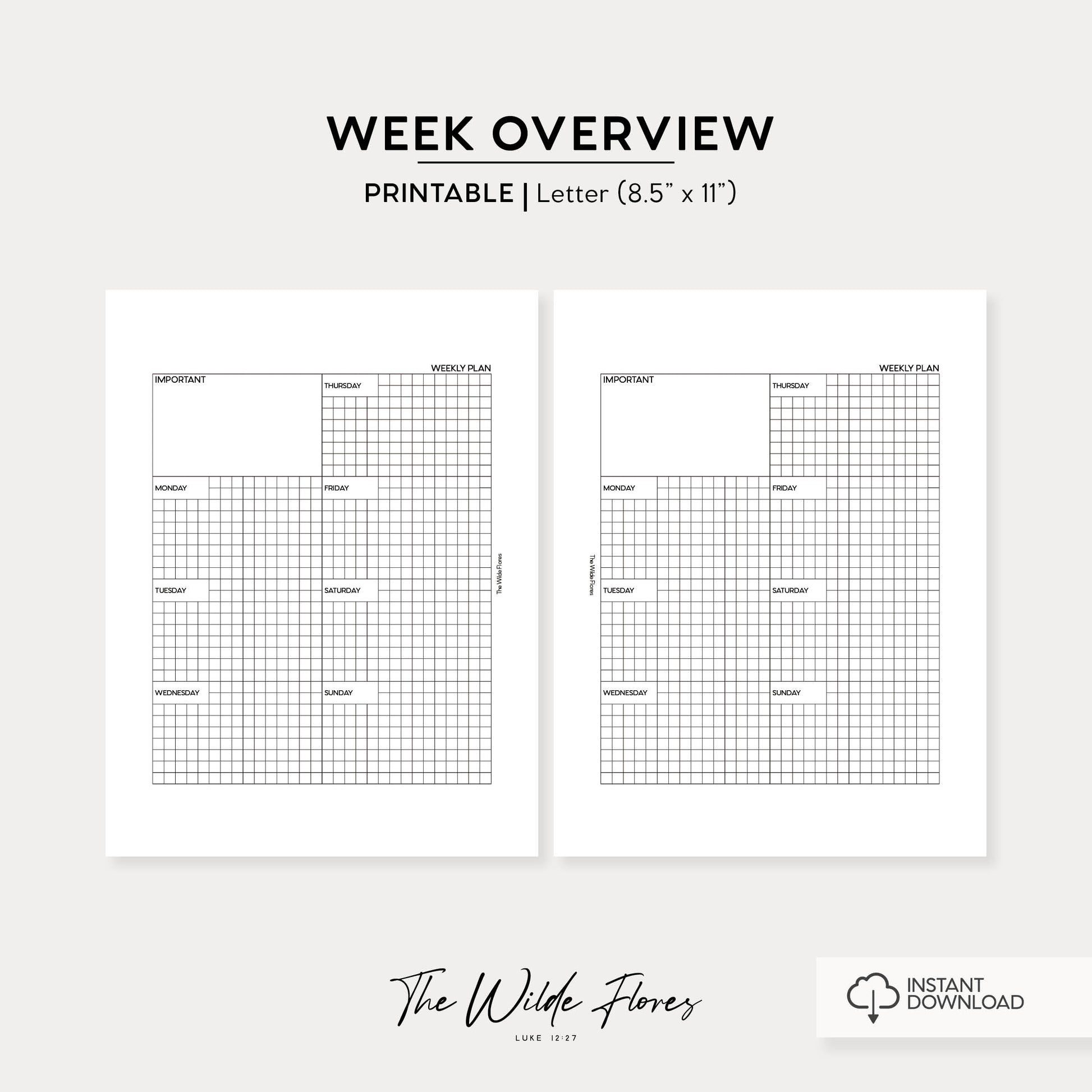 Weekly Overview Undated 12 Weeks: GRID Letter Size Printable