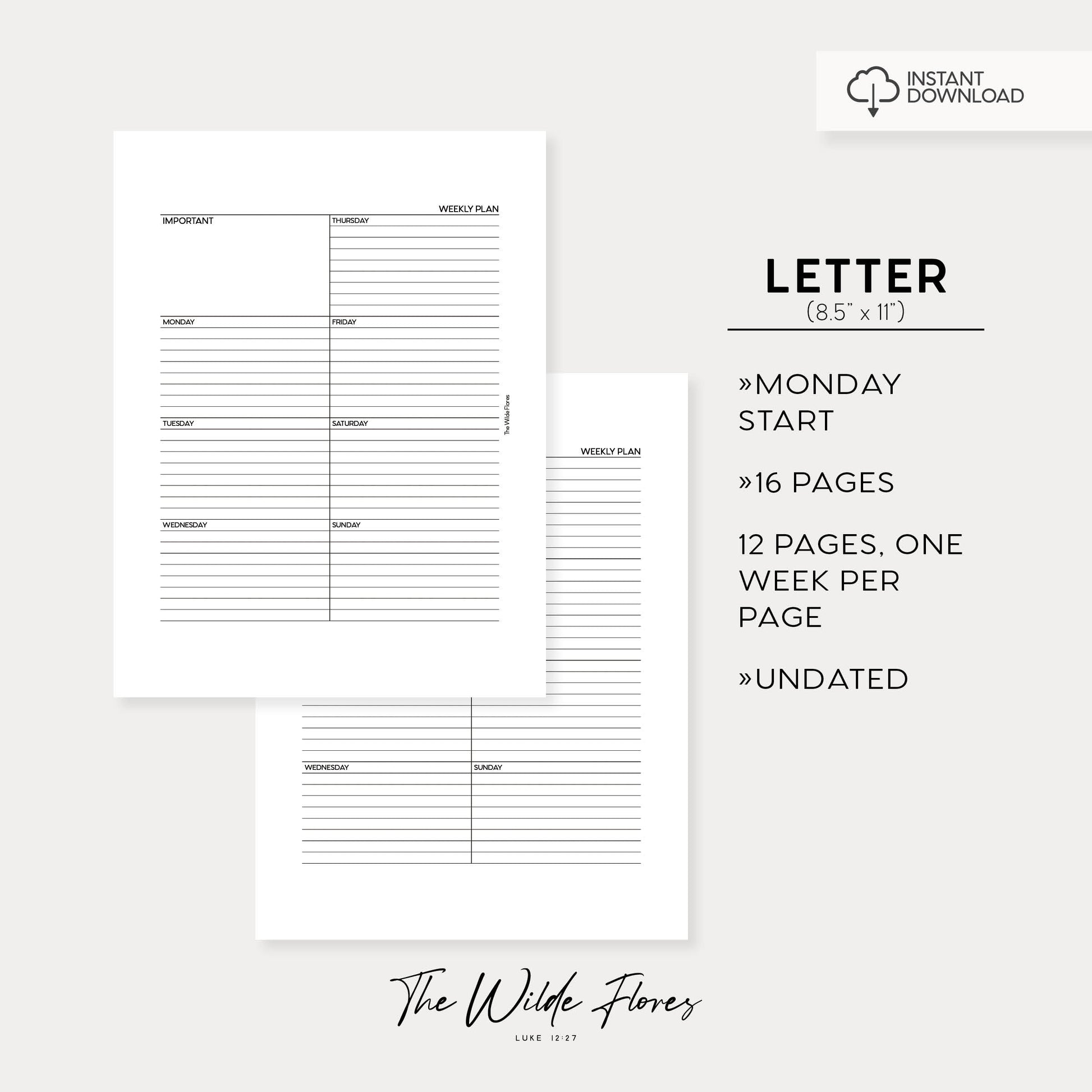 Weekly Overview Undated 12 Weeks: LINED Letter Size Printable